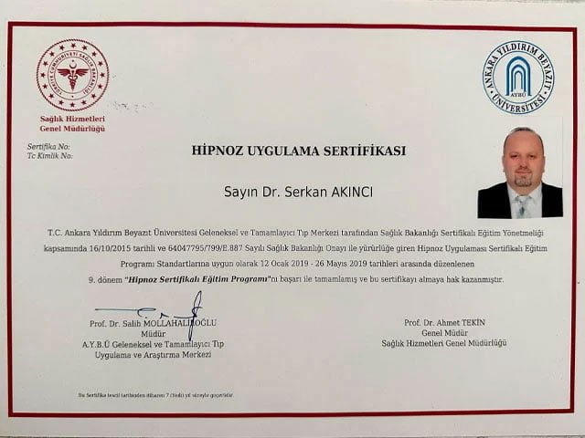 T.C. Sağlık Bakanlığı onaylı Hipnoz Uygulayıcısı Dr. Serkan Akıncı, bilimsel yöntemleri ve bütüncül bakış açısını bir araya getirerek zihinsel ve duygusal iyileşme sürecinde kişiye özel çözümler sunar.